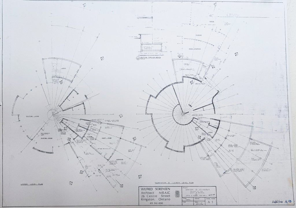 “The house was built on the Meisels’ 150-acre property in 1971, and designed to harmonize with its natural setting. The windows overlook the surrounding lake, forests and hills. Every morning in the summer, Meisel swims two lengths of his lake, a distance of about a mile and a half. In winter, he skates and skis. [Note: John Meisel lived to 101!]