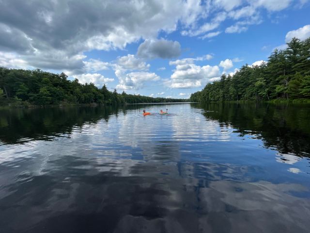 “Sparkling lake water and majestic trees.”